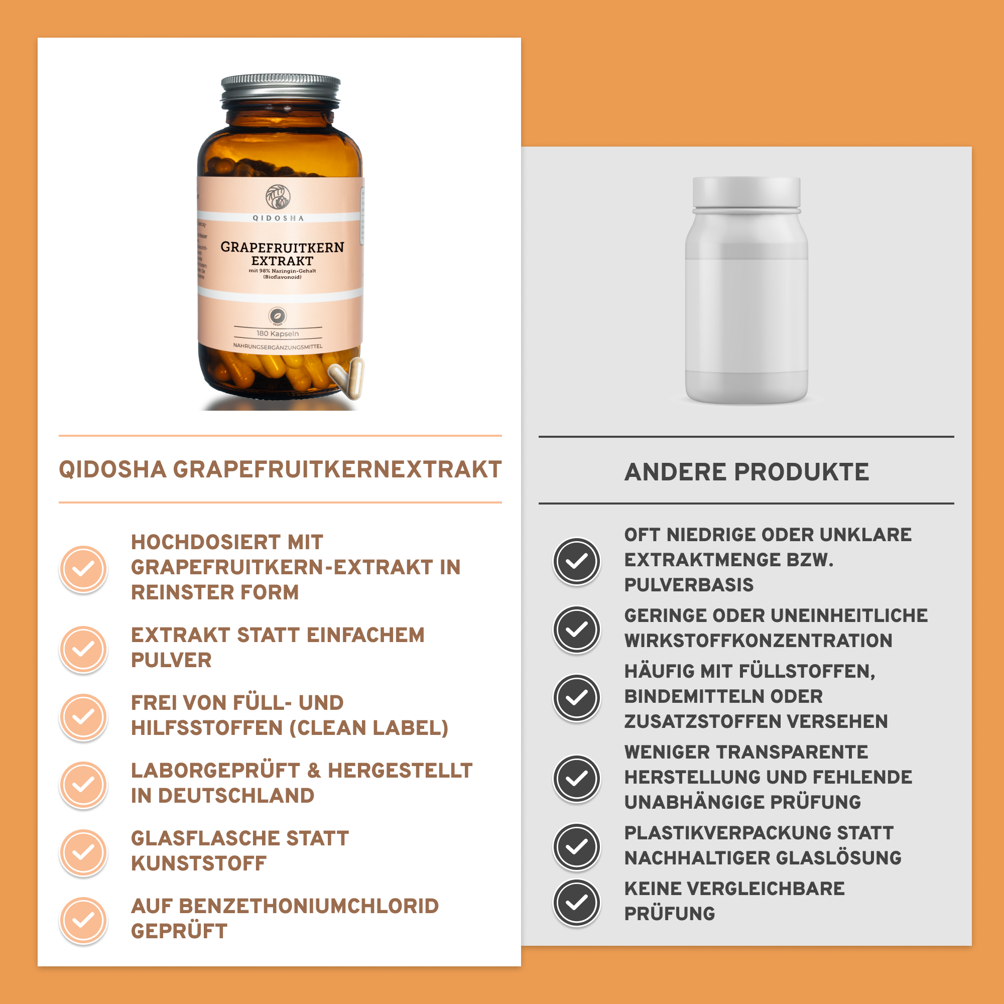 Qidosha Grapefruitkernextrakt: Premium Nahrungsergänzung mit 180 Kapseln, reines Naringin, laborgeprüft, ohne Füllstoffe, nachhaltige Glasverpackung, hohe Qualität, hergestellt in Deutschland.