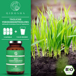 Bio Gerstengras-Kapseln von QIDOSHA: Premium, laborgeprüfte Qualität, 1.500 mg je Tagesportion, ohne Füllstoffe, in umweltfreundlichem Braunglas, kontrolliert biologisch aus Bayern.