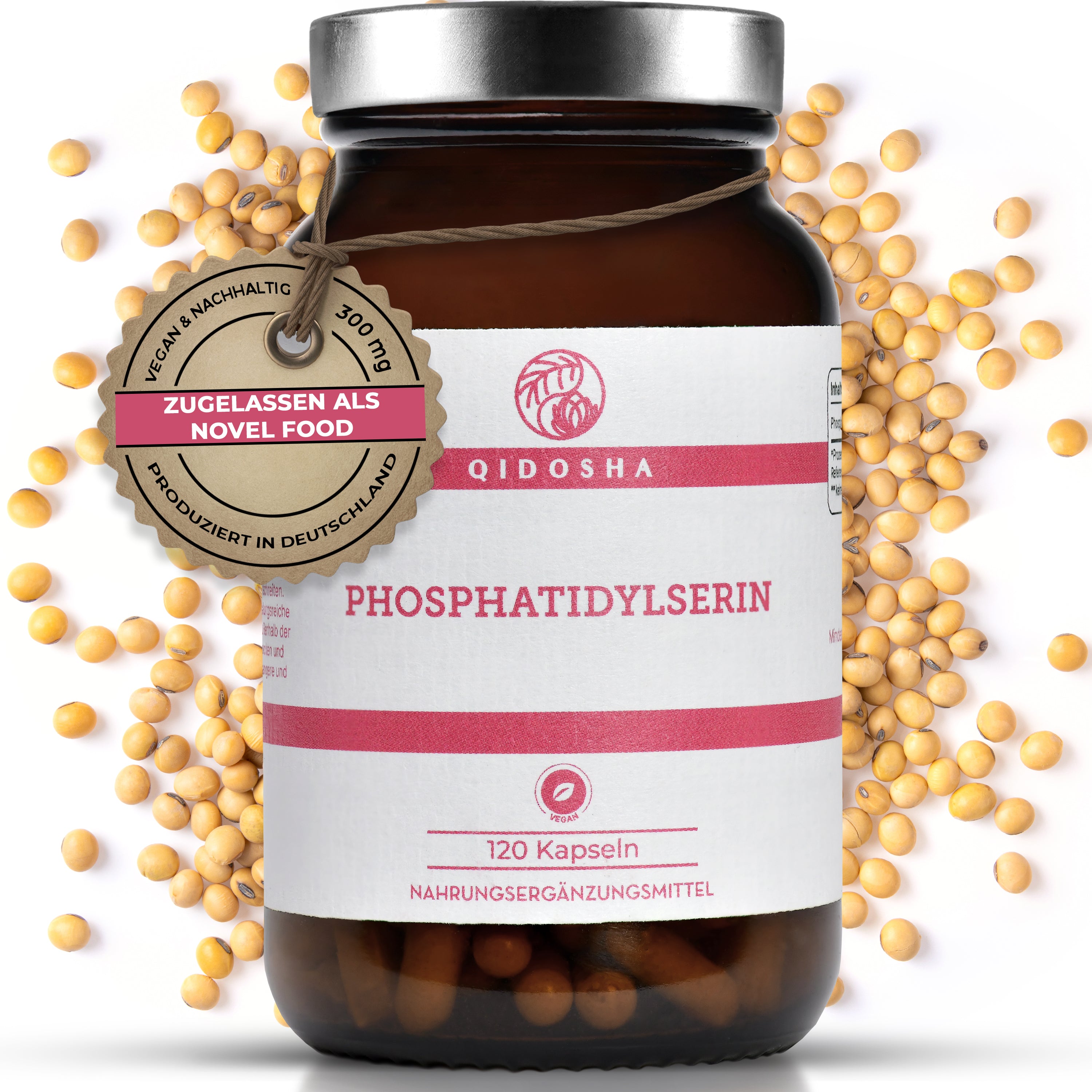 L-Tryptophan im Glas: Premium, laborgeprüftes, pflanzliches Supplement von QIDOSHA mit 240 veganen Kapseln, ohne Füllstoffe, hergestellt in Deutschland. True Clean Label.