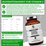 Vitamin C Komplex gepuffert mit Bioflavonoiden, nachhaltiges Premium-Produkt aus Deutschland, 240 vegane Kapseln in braunem Glas, ohne Füllstoffe, laborgeprüfte hohe Qualität.