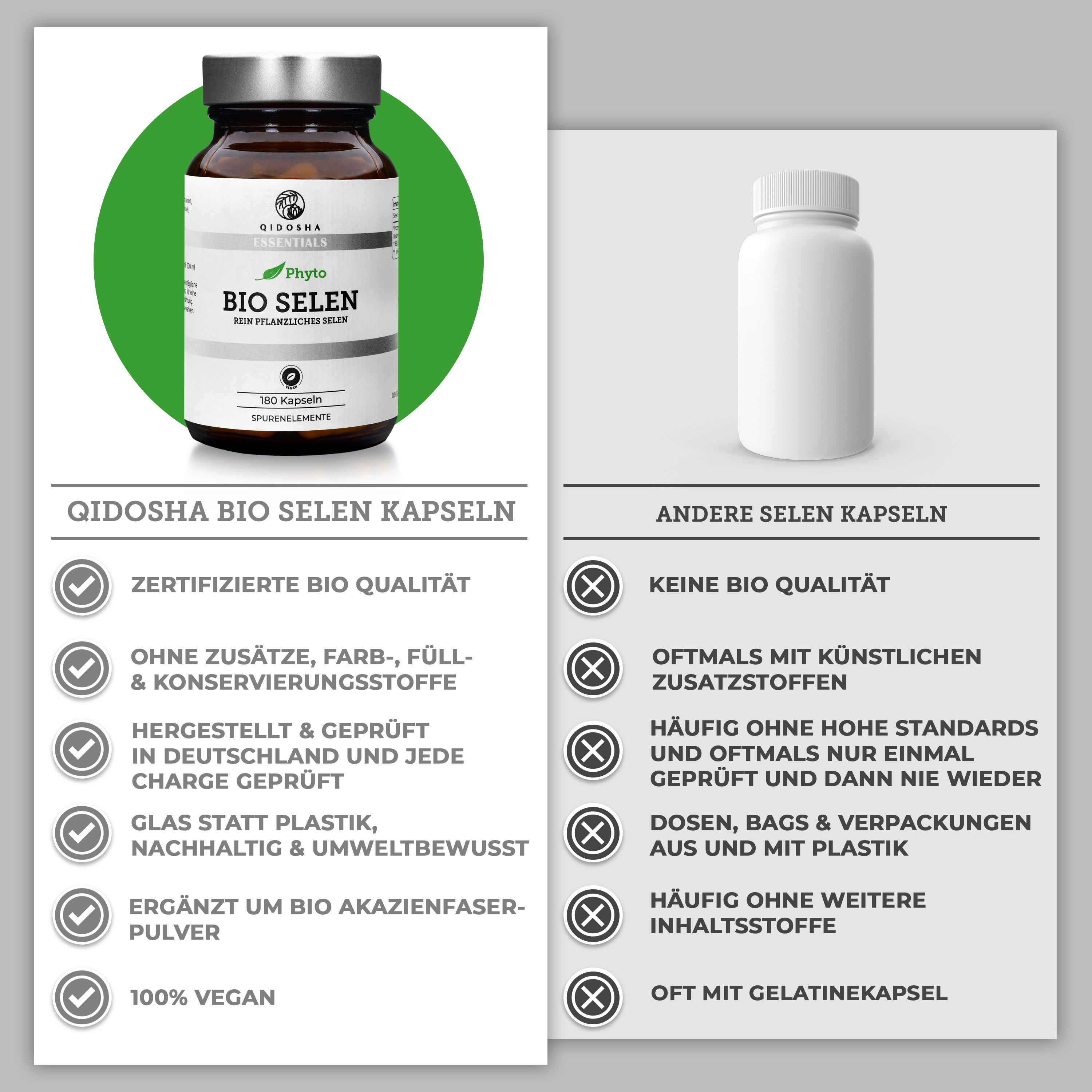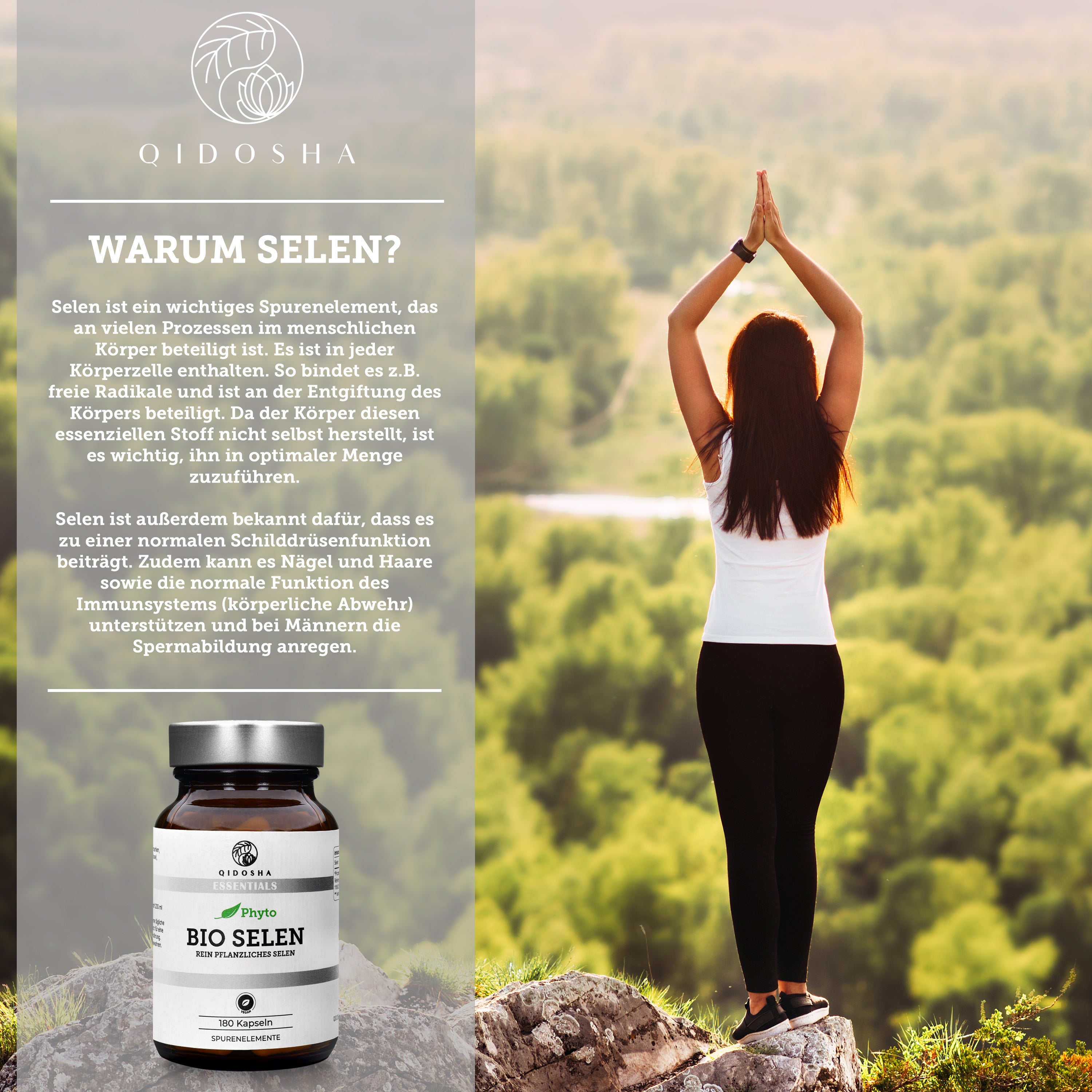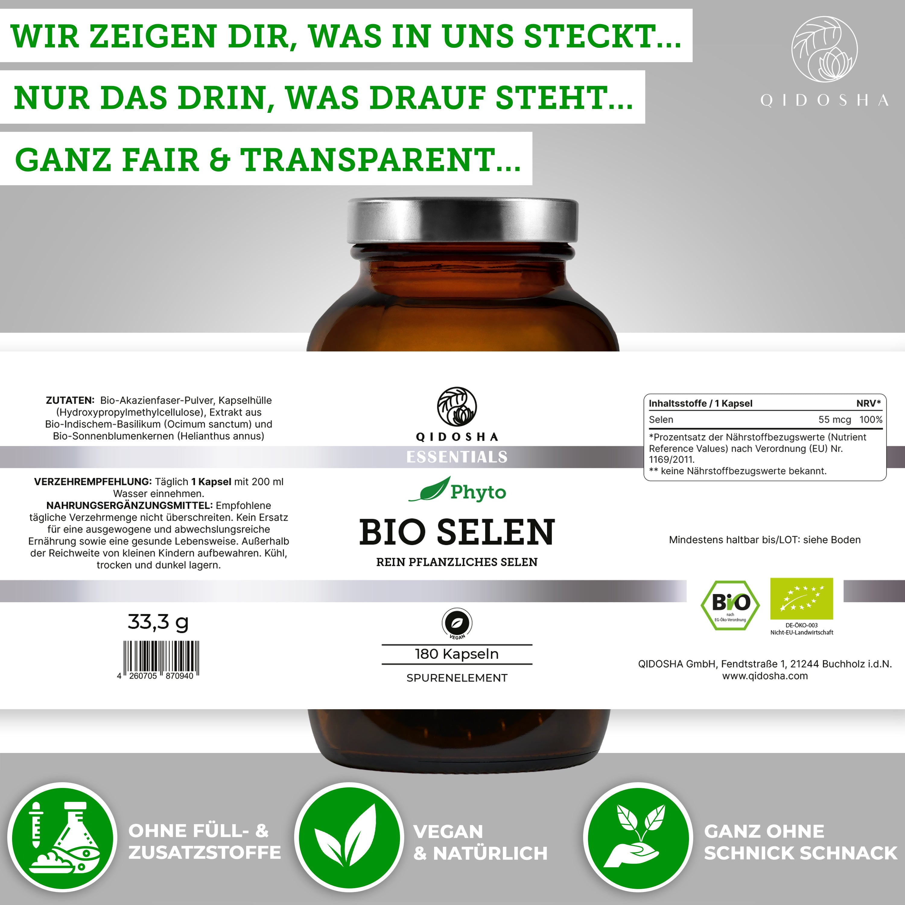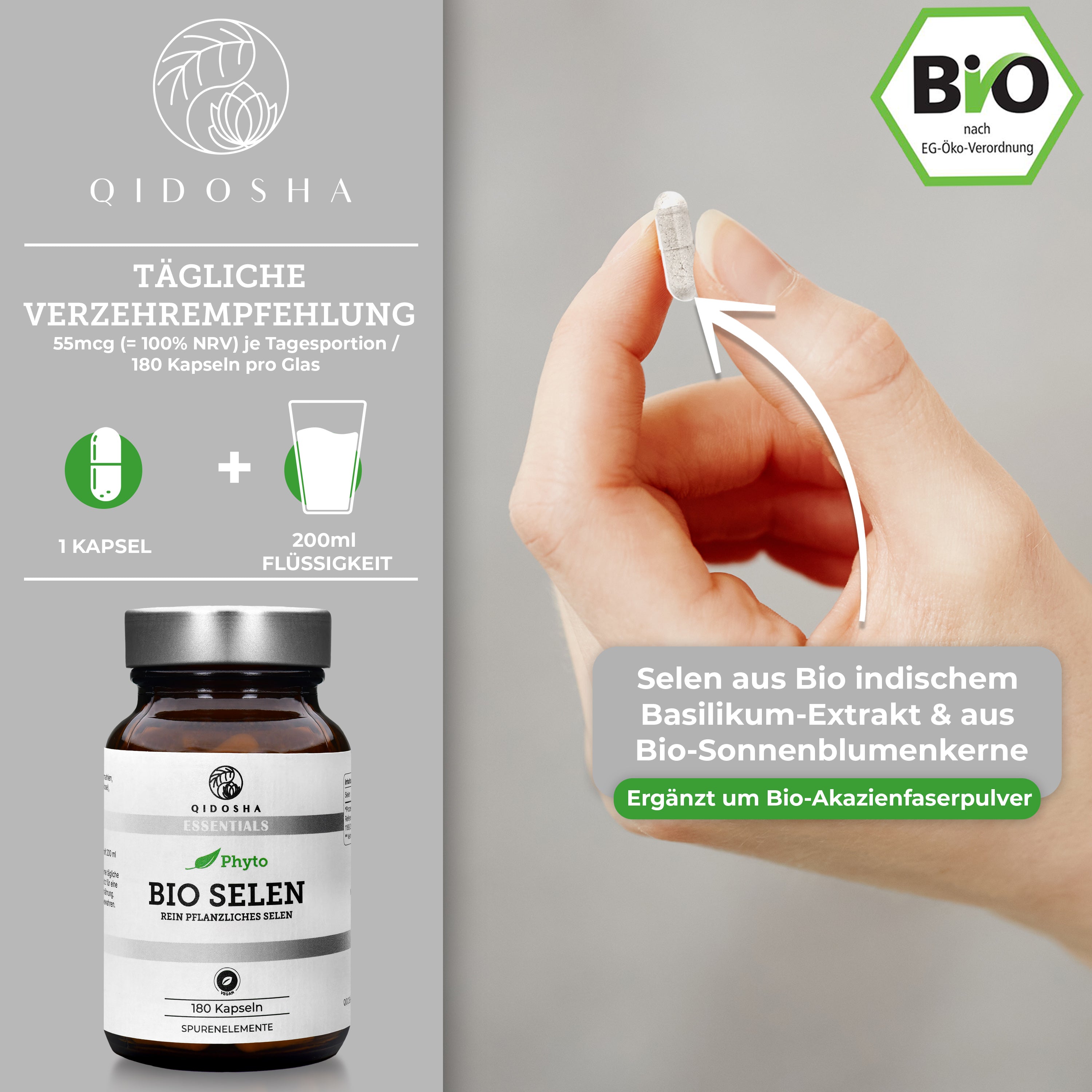 Bio Selen (pflanzlich) aus Indischem Basilikum und Sonnenblumenkernen in dunklem Glas, 180 vegane Kapseln, Premium, laborgeprüft, organisch, ohne Füll- oder Zusatzstoffe, hergestellt in Deutschland.