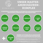 QIDOSHA Essentials – Master Aminosäuren Komplex plus Vitamin B6, vegan, 180 Kapseln, fermentiert aus Mais, ohne Magnesiumstearat, laborgeprüfte Premium-Qualität für optimale Proteinsynthese.