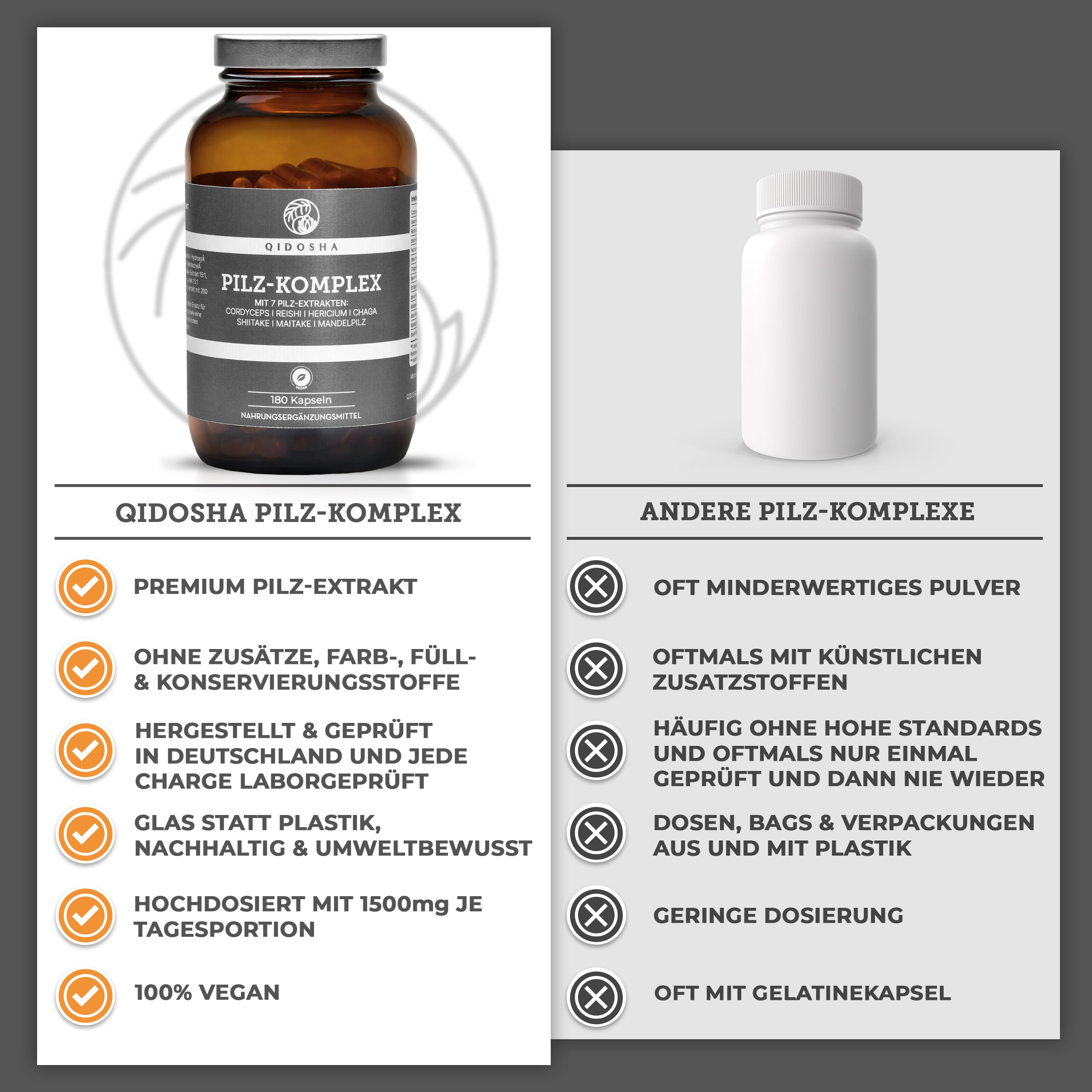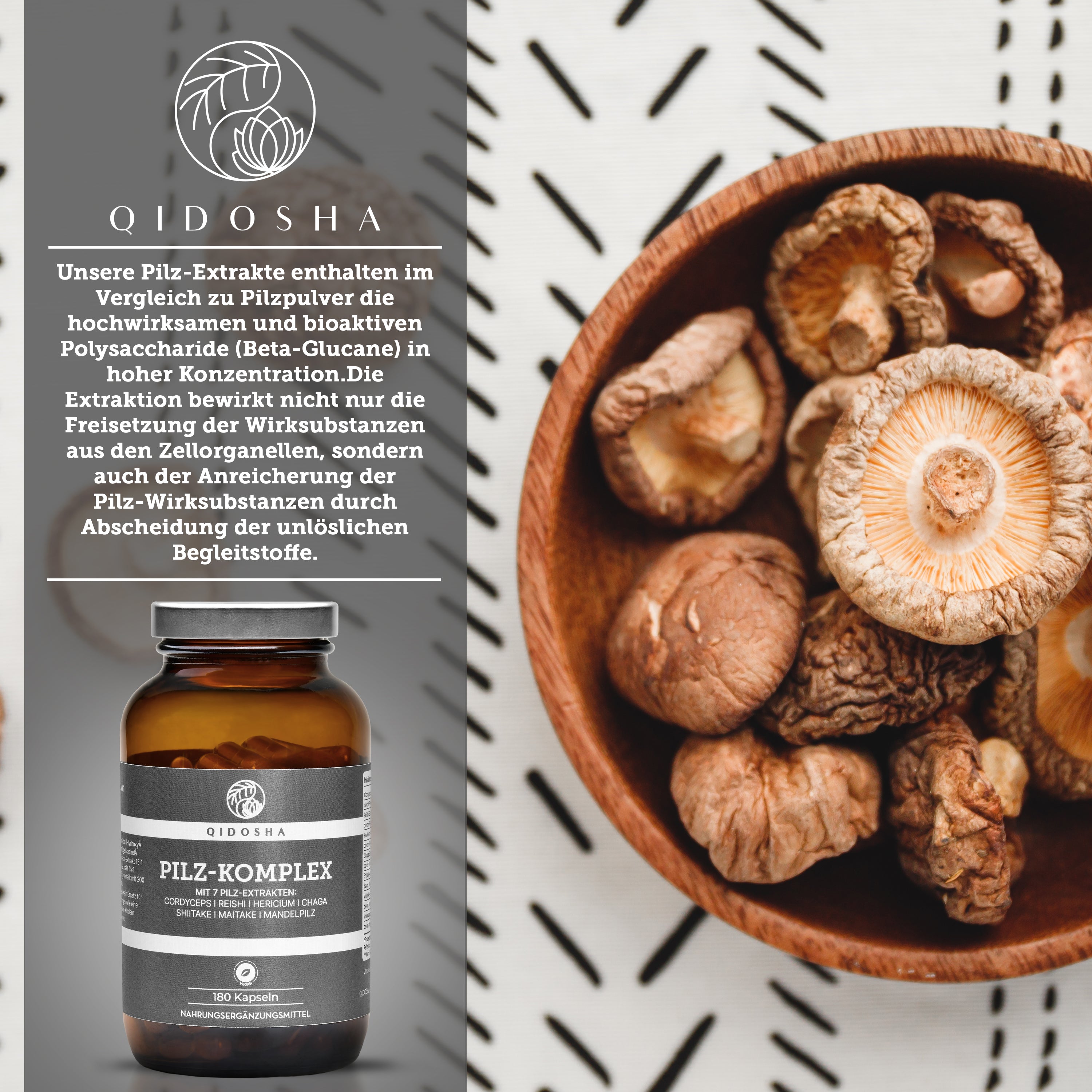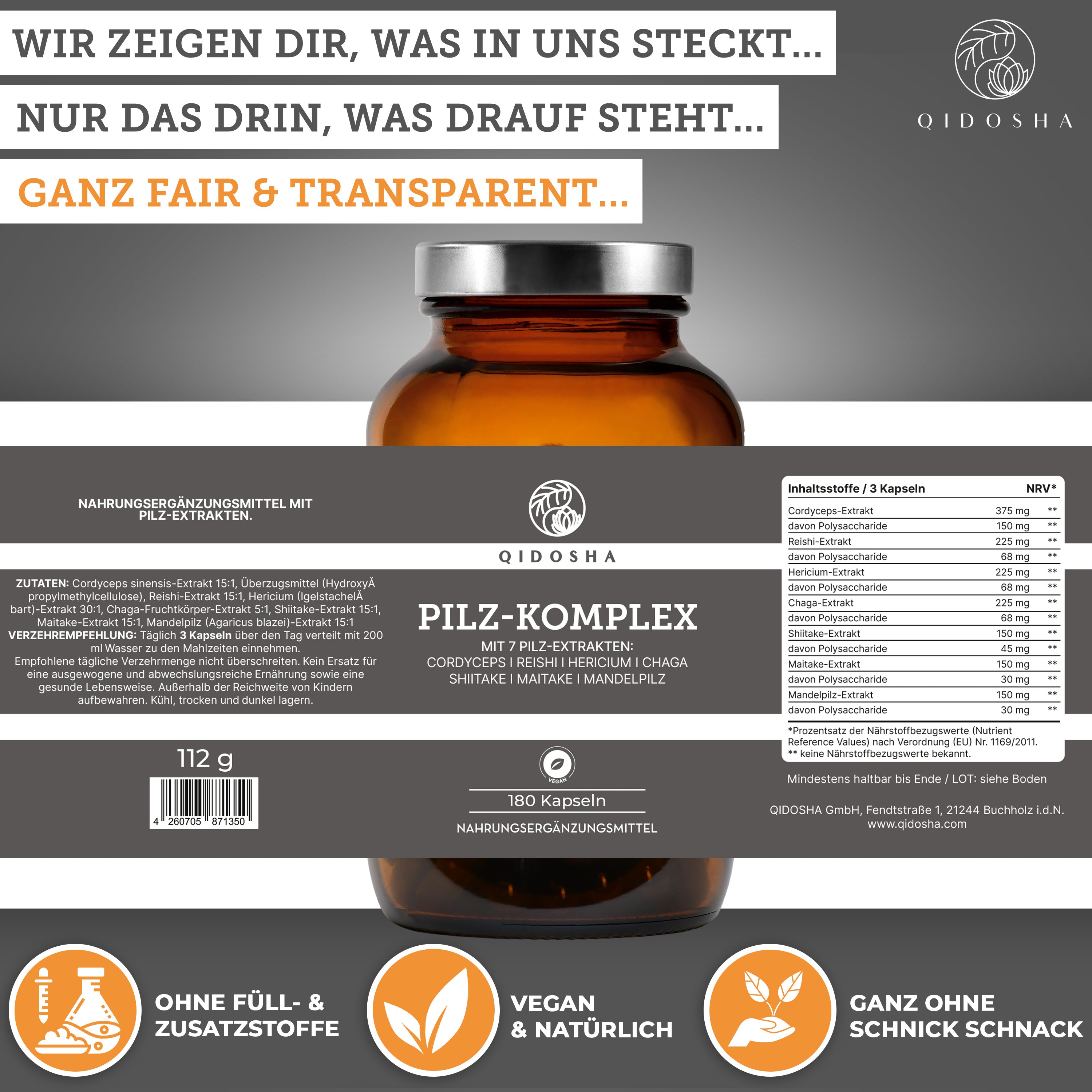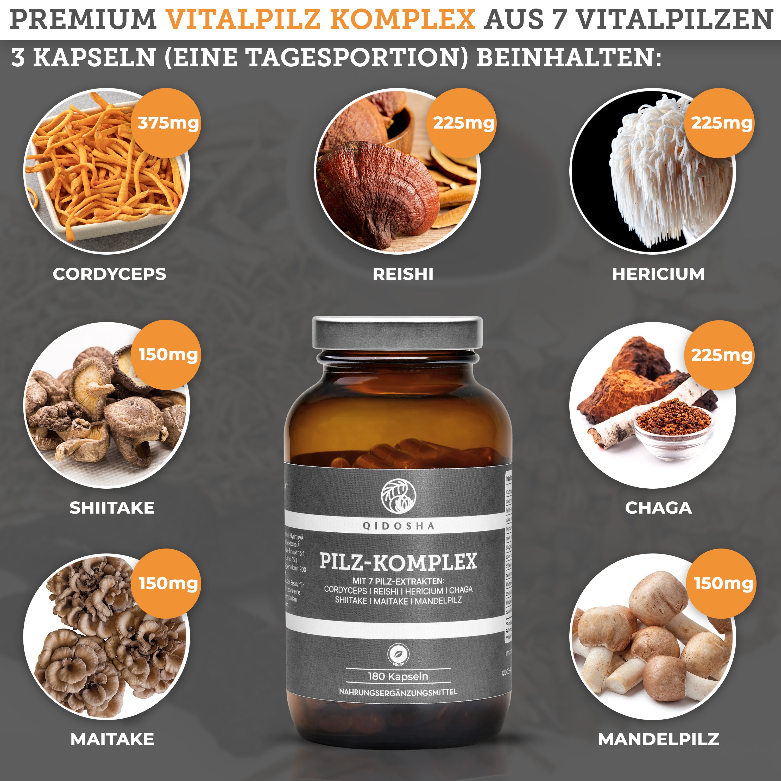 Pilz Komplex im Glas: Premium Nahrungsergänzungsmittel mit sieben Vitalpilz-Extrakten, 180 vegane Kapseln, hergestellt in Deutschland, laborgeprüfte Qualität, ohne Füll- oder Zusatzstoffe.