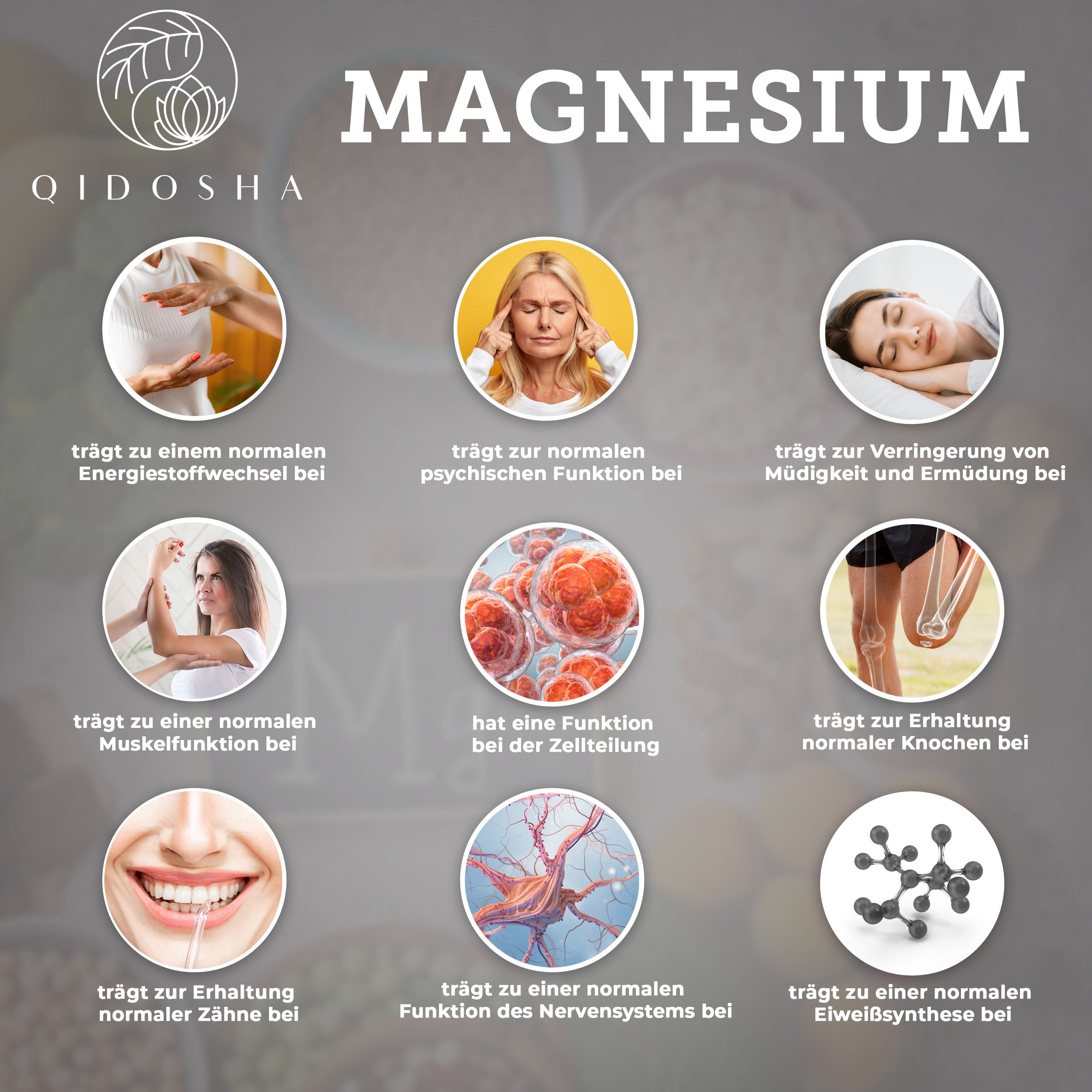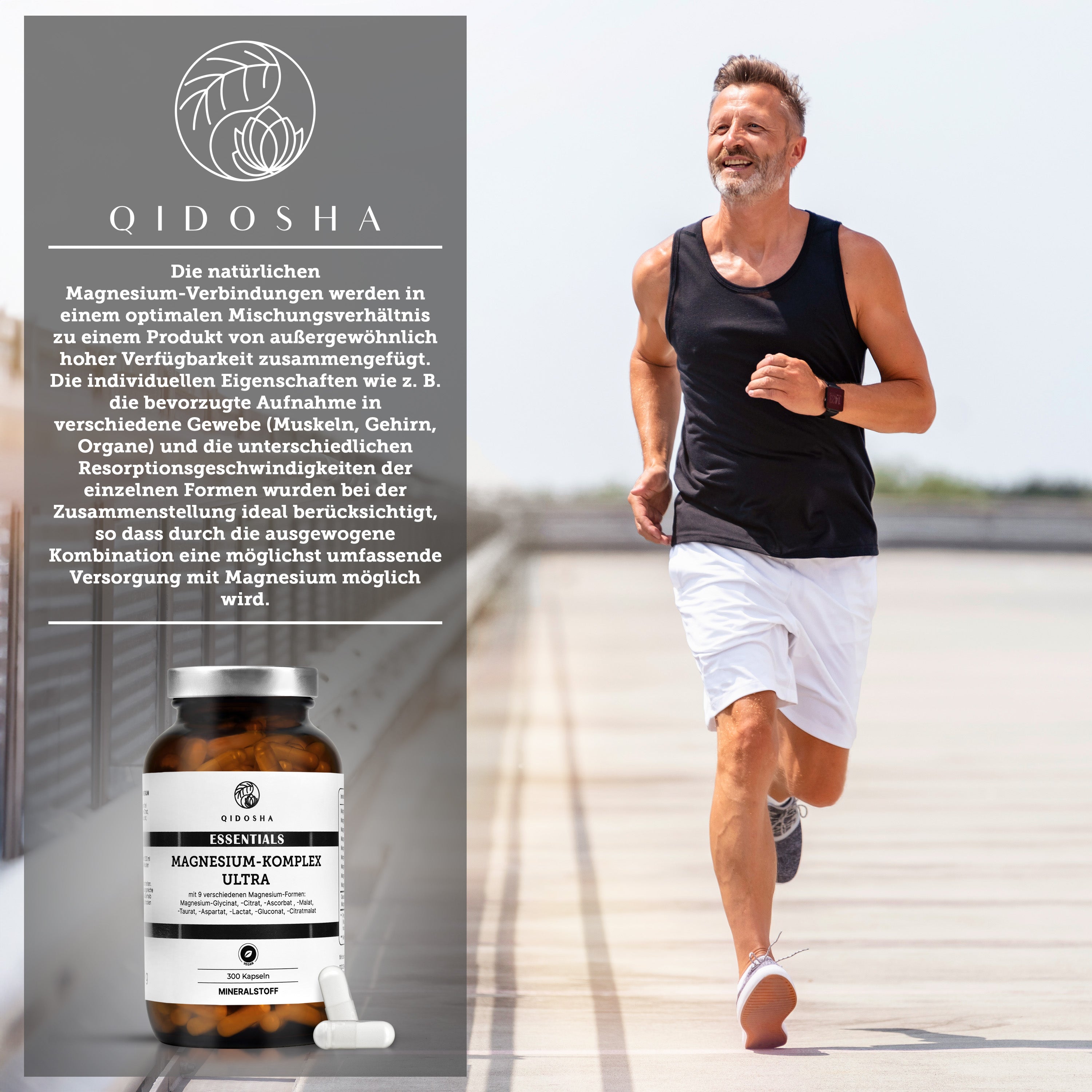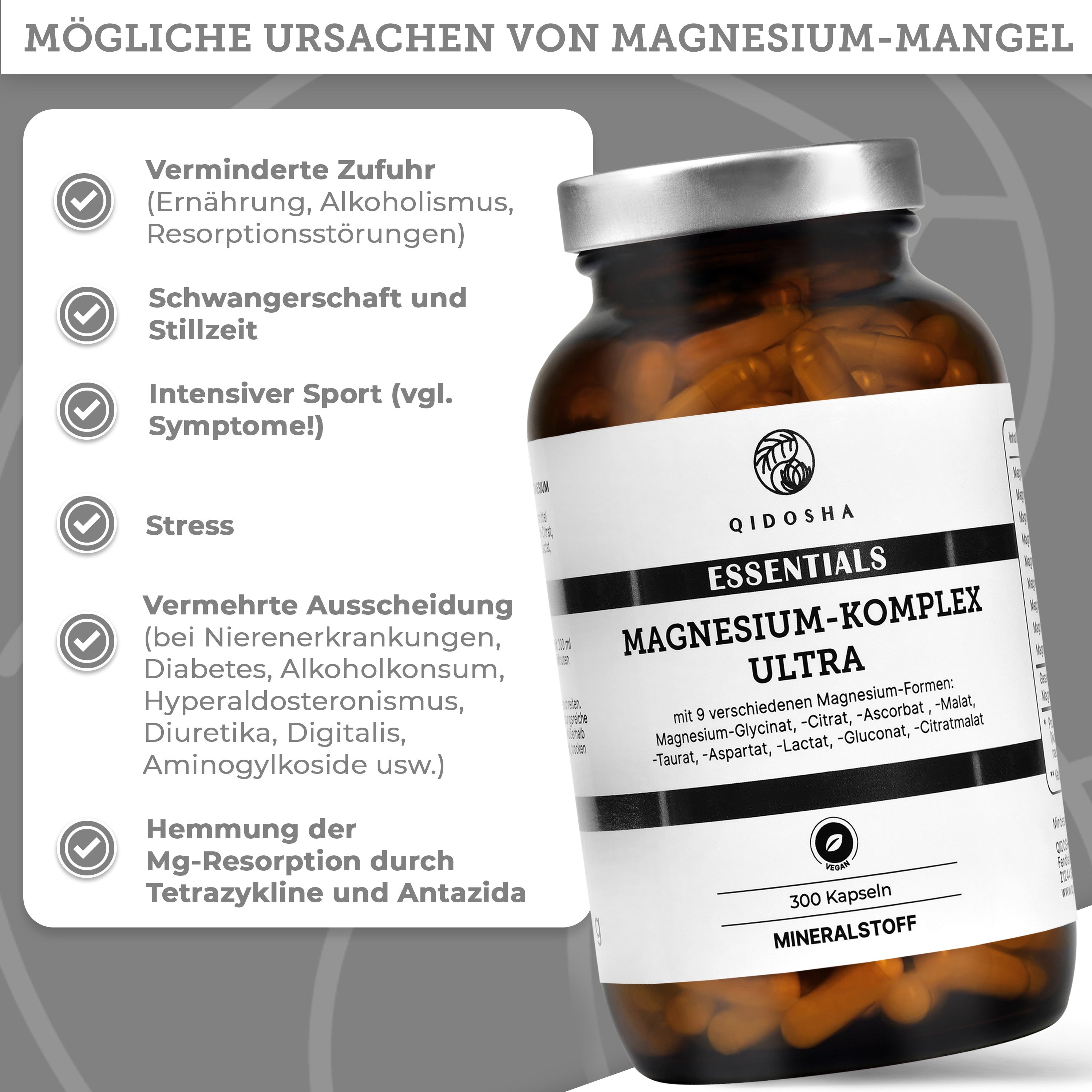 QIDOSHA Essentials Magnesium-Komplex Ultra im Glas, 300 vegane Kapseln, laborgeprüft, ohne Zusatzstoffe, enthält neun Magnesiumformen für hohe Bioverfügbarkeit und Premium-Qualität.