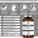 Magnesium-Komplex Ultra im Glas mit 300 veganen Kapseln, laborgeprüft, hohe Qualität, enthält 9 organische Magnesiumformen, nachhaltig, ohne Füllstoffe, produziert in Deutschland.