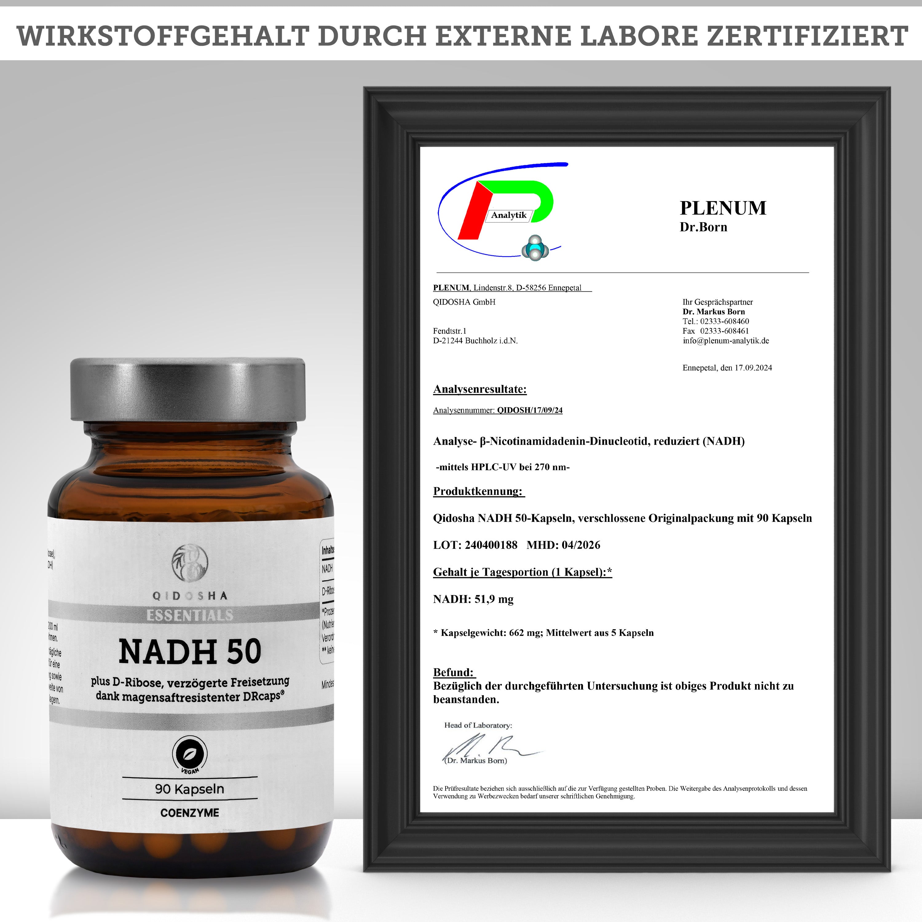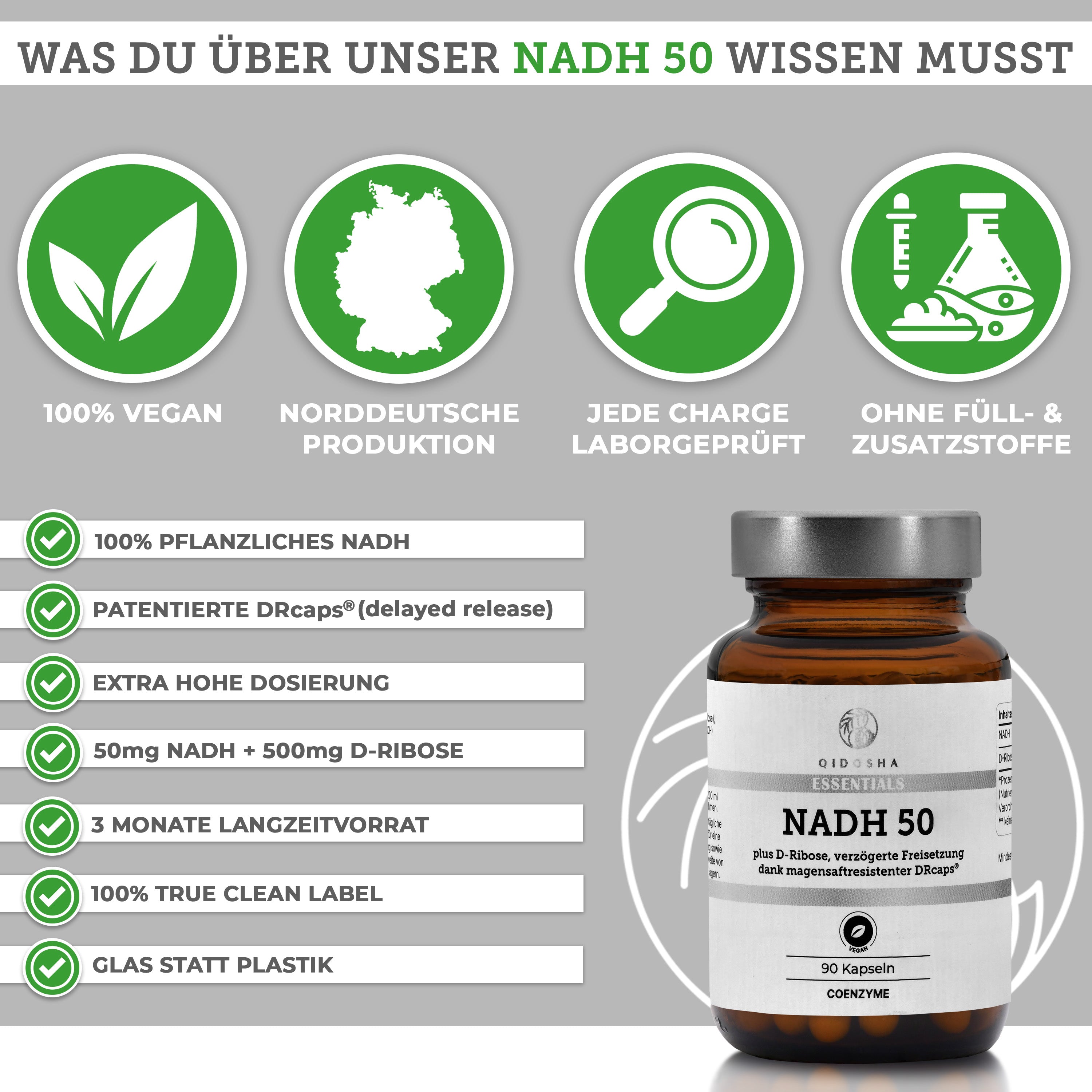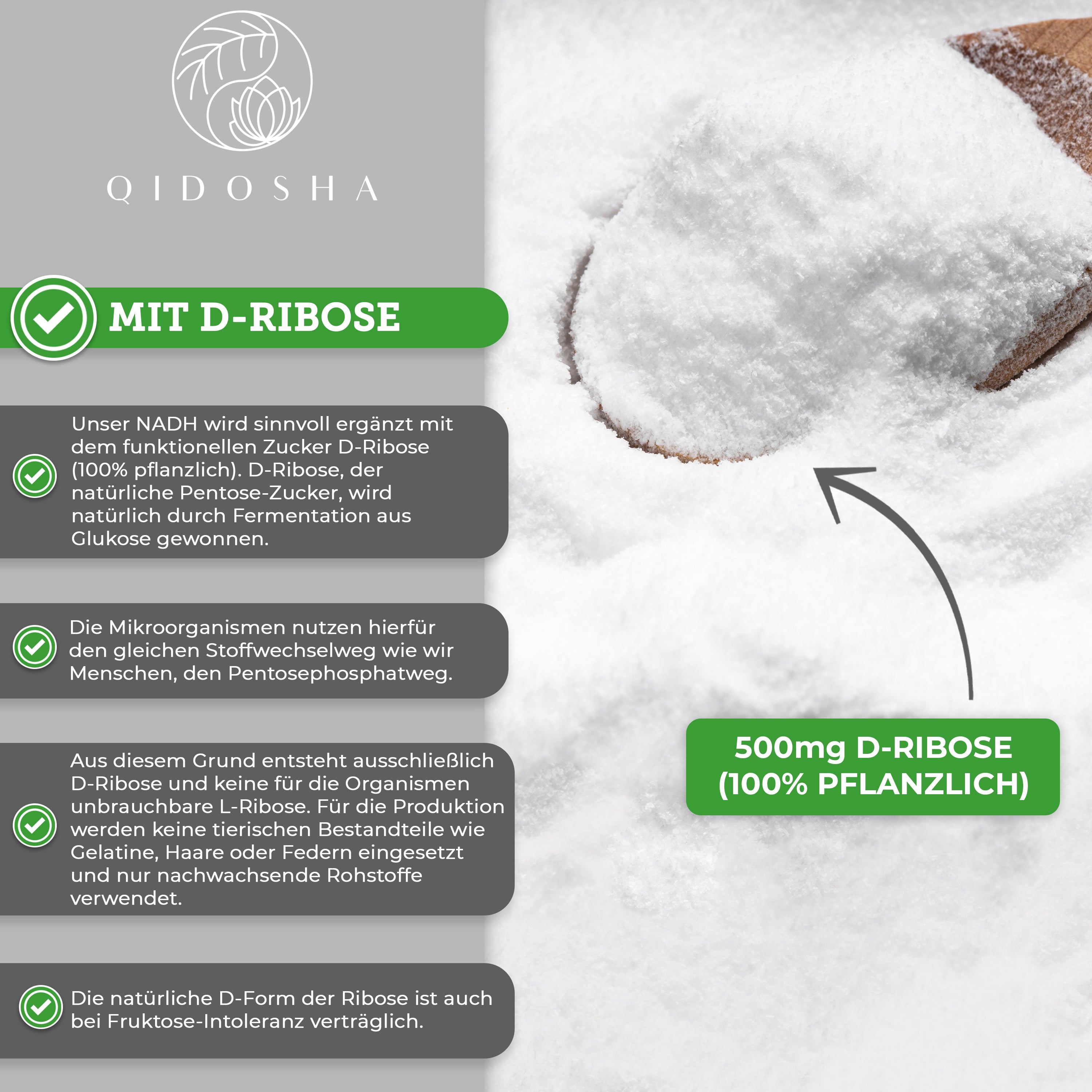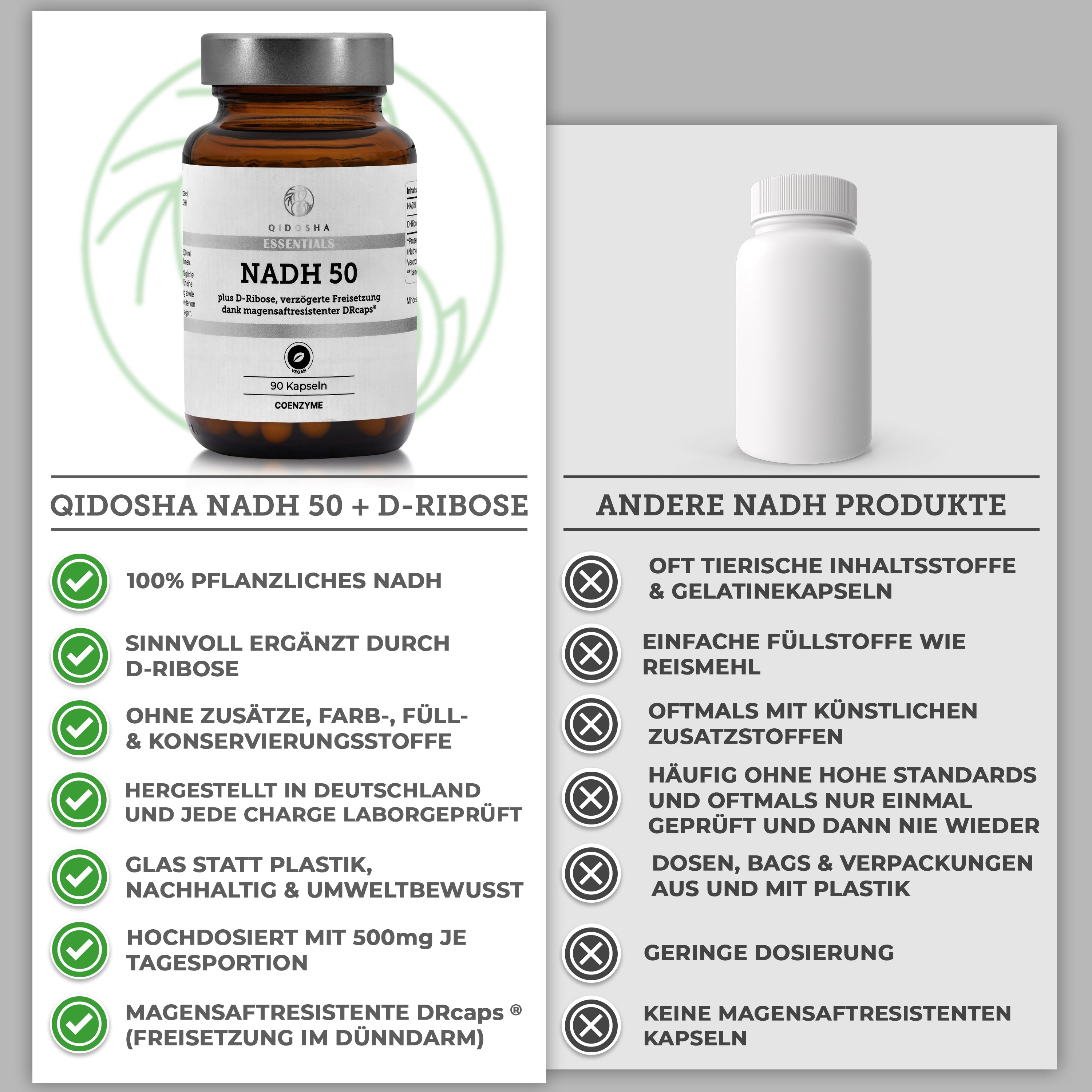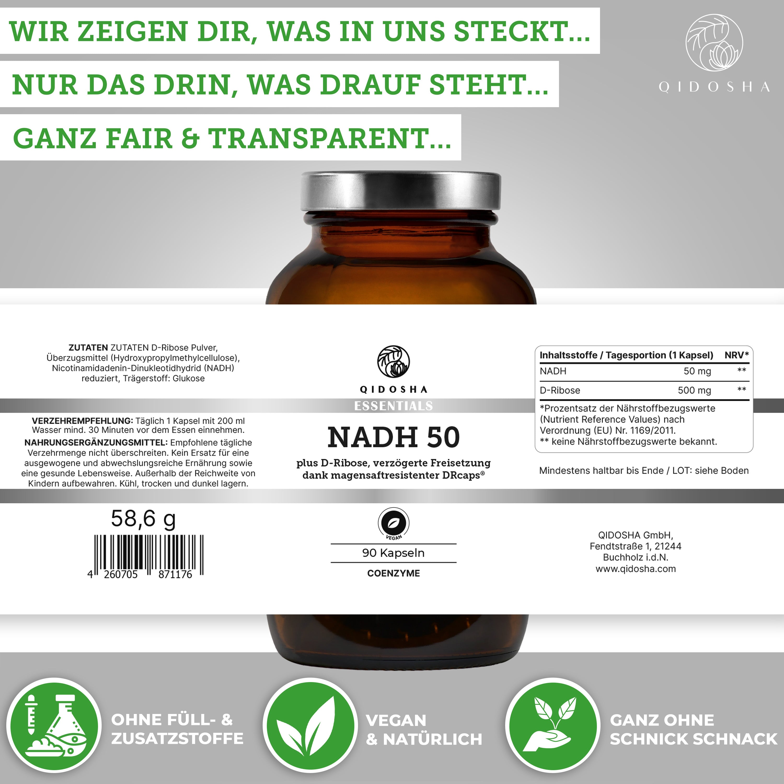 NADH plus D-Ribose im Glas: Premium, vegan, laborgeprüft, in Deutschland hergestellte Nahrungsergänzung, 90 magensaftresistente Kapseln, ohne Füllstoffe, für zelluläre Energiegewinnung.