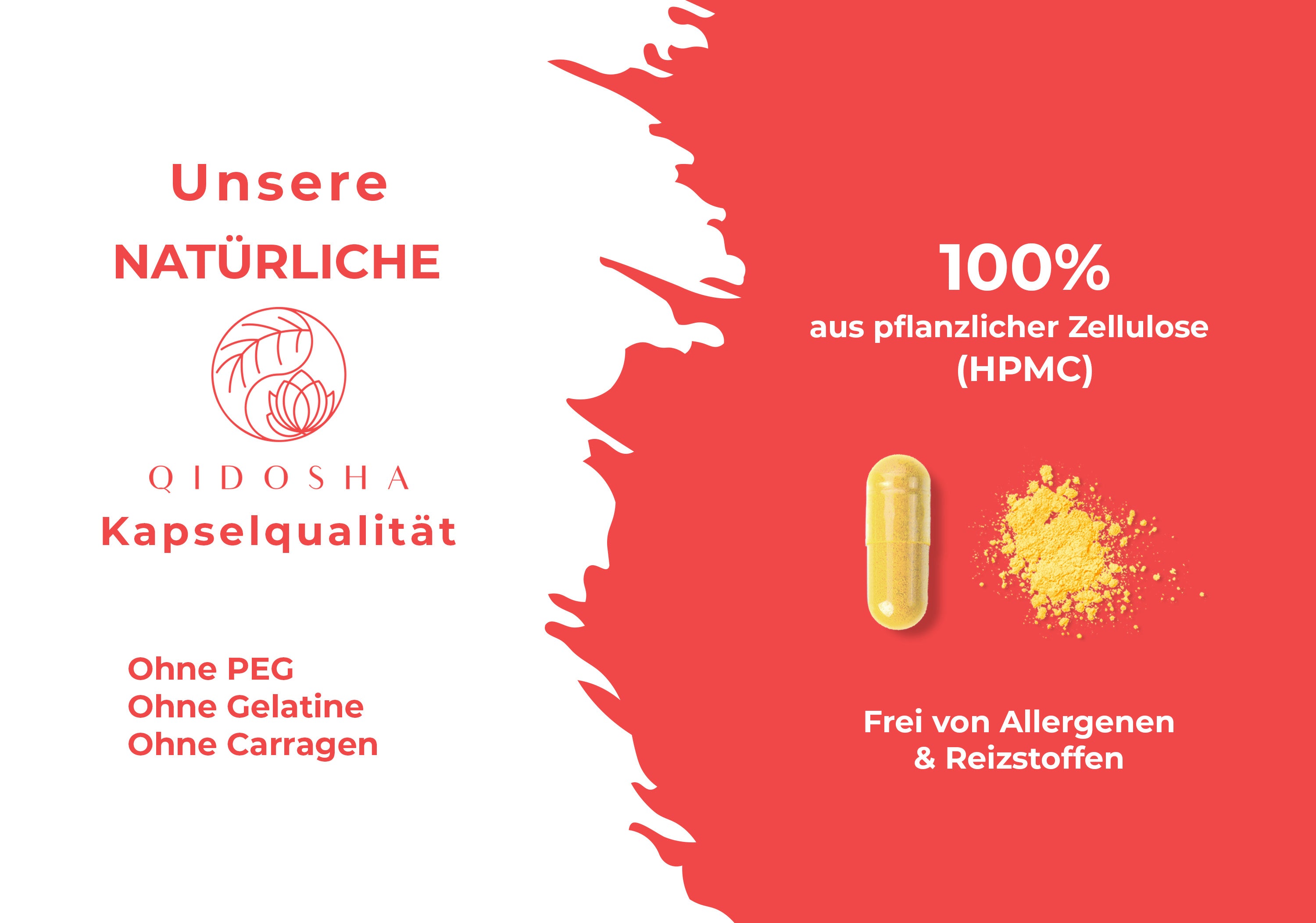 QIDOSHA Coenzym Q10 liposomal mit PureWay™ Q10: Premium-Nahrungsergänzungsmittel, laborgeprüft auf Reinheit und Wirksamkeit, ohne Füllstoffe, in nachhaltigem Glasbehälter.